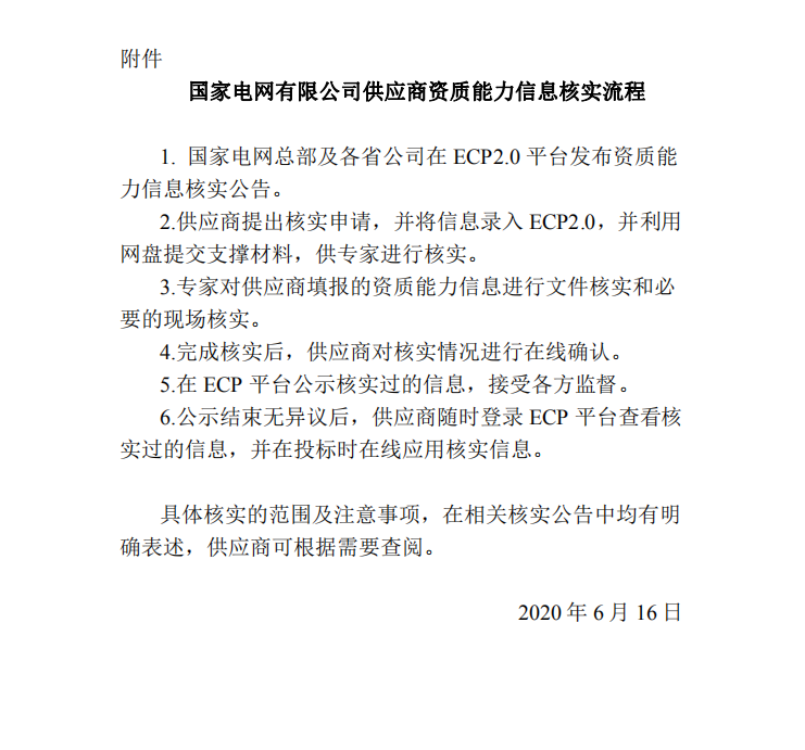 此举只是响应国家招标法,更加明确了不设参与投标的门槛而已,实际没多大变化。以往国网公司会对通过总部及各省公司核实的供应商发放《核实证明》/《证明函件》,俗称“一纸证明”,现在取消发放了,信息直接体现在ECP2.0上。