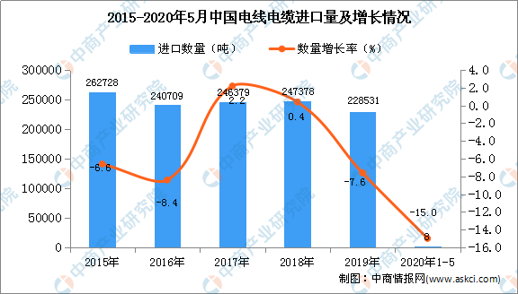 在我国进口的电线电缆中,特种电线电缆占有较大比重,近年来国内电线电缆企业更加注重产品研发,在特种电线电缆领域不断取得突破,国内市场更多使用国产特种电线电缆,行业进口替代趋势较明显,2009-2019年我国电线电缆进口量由28.19万吨降至22.85万吨,行业内进口量不断下降,我国特种电缆迎来新的发展机遇。